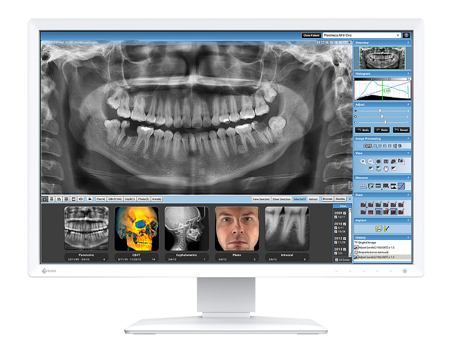 Funkcja Hybrid Gamma PXL automatycznie rozróżnia obrazy kolorowe i monochromatyczne, wyświetlając je w taki sposób, aby każdy piksel miał optymalną skalę szarości. W efekcie radiolog może wygodnie oglądać wszystkie badania na jednym ekranie.